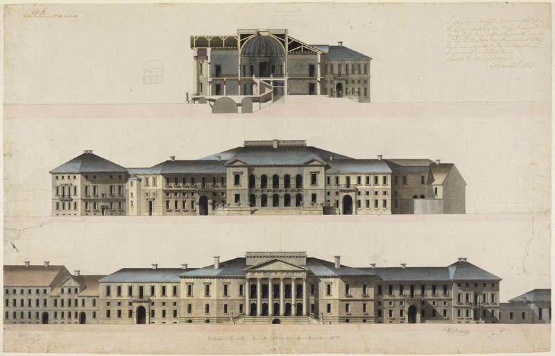 Bild: Friedrich Weinbrenner, Plan zum Markgräflichen Palais: Schnitt, Gartenfront und Fassade, 1804, Staatliche Kunsthalle Karlsruhe