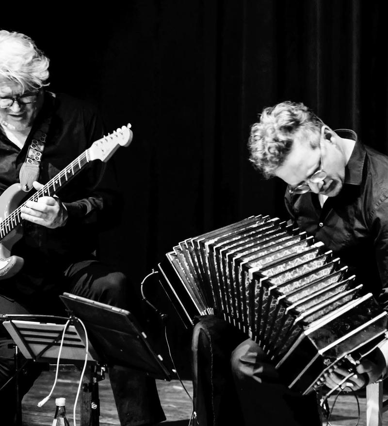 Die Hemingway Lounge Karlsruhe präsentiert ein besonderes BarJazz-Live-Konzert: Der Heidelberger Gitarrist Jochen Seiterle und der Bandoneonist Norbert Kotzan widmen sich dem Neotangojazz – einer modernen, improvisationsfreudigen Weiterentwicklung des traditionellen Tangos. Das Duo kombiniert Bandoneon, Gitarre, Gesang und Live-Elektronik zu einem dichten, atmosphärischen Klang, der melancholische Melodien mit spannungsreichen Dialogen verbindet. So entstehen neue Facetten einer leidenschaftlichen Musiktradition. Der Eintritt ist frei, der Musiker-Hut steht für einen Obolus am Eingang bereit.
