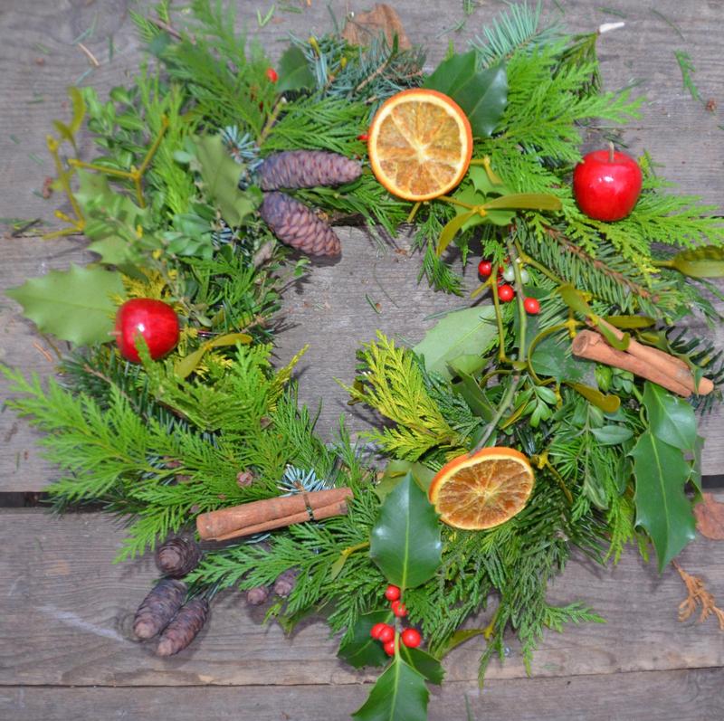 Unter Anleitung einer erfahrenen Floristin können Adventskränze und Türschmuck für die Vorweihnachtszeit gebastelt werden.