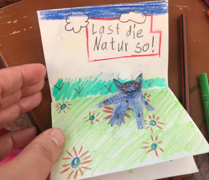 Überlege dir deine eigene Klimamonstergeschichte und bringe deine supertollen Planeten-Rettungsideen mit ein oder überrasche Deine Liebsten mit einer selbstgemachten Pop-Up Karte. Auch hier ist viel Platz für Ideen, wie wir unseren Planenten helfen können. Male, zeichne, klebe, gestalte, am liebsten mit recycelten Materialien, wie alten Plakaten, Pappen und bunten Papierresten!