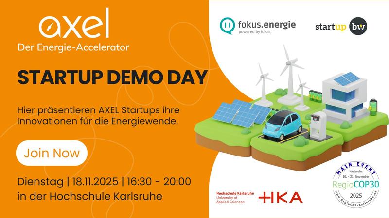 AXEL ist der einzige Accelerator mit 100 % Fokus auf Energie. Er wird von Start-up BW gefördert und zudem von vielen Unternehmen, Institutionen und Hochschulen unterstützt.