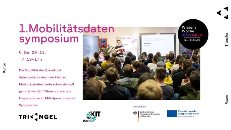 Das 1. Karlsruher Mobilitätsdatensymposium findet im Rahmen der Wissenswoche ANYMOS vom 05.-08.11.2025 statt.